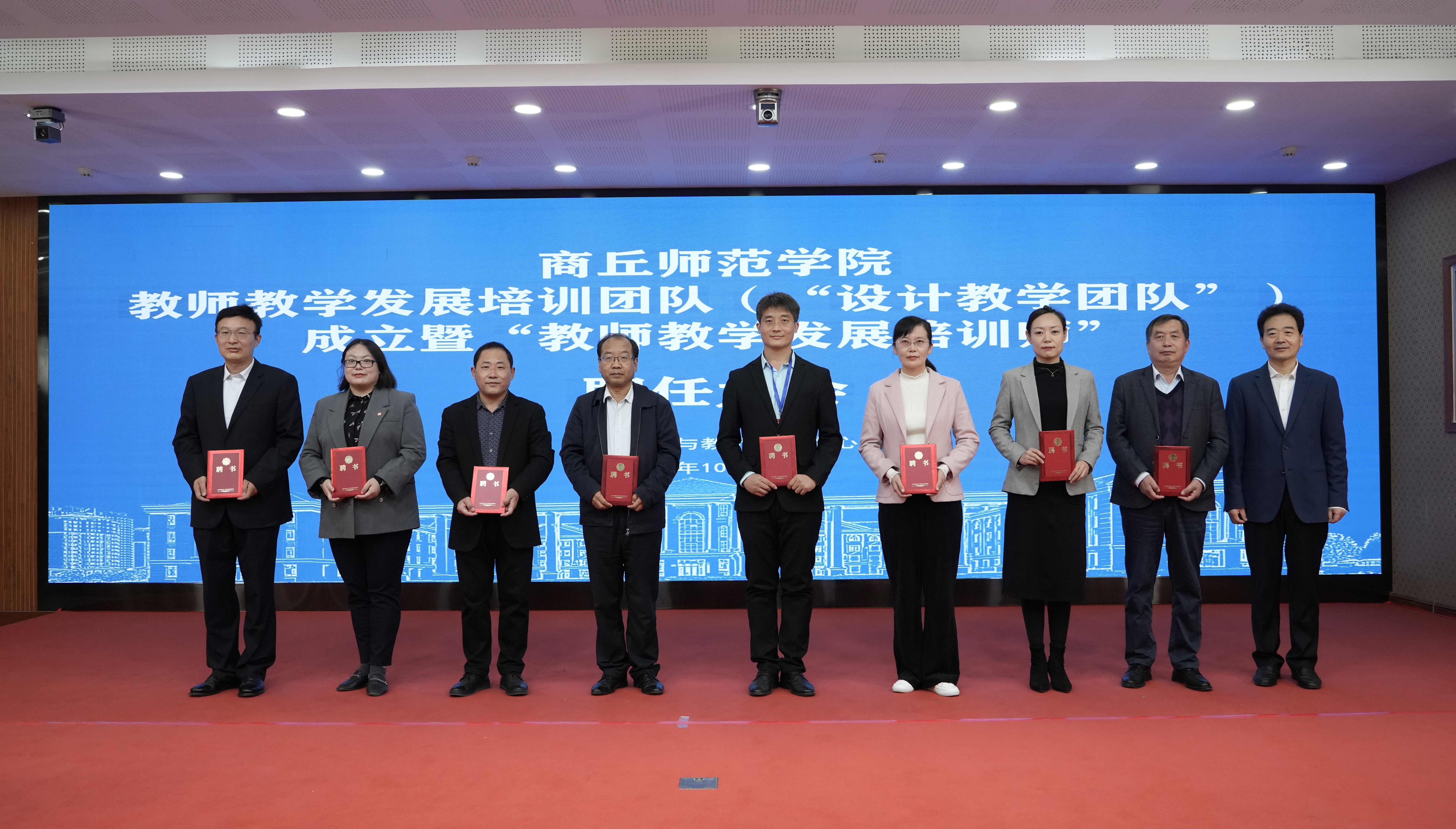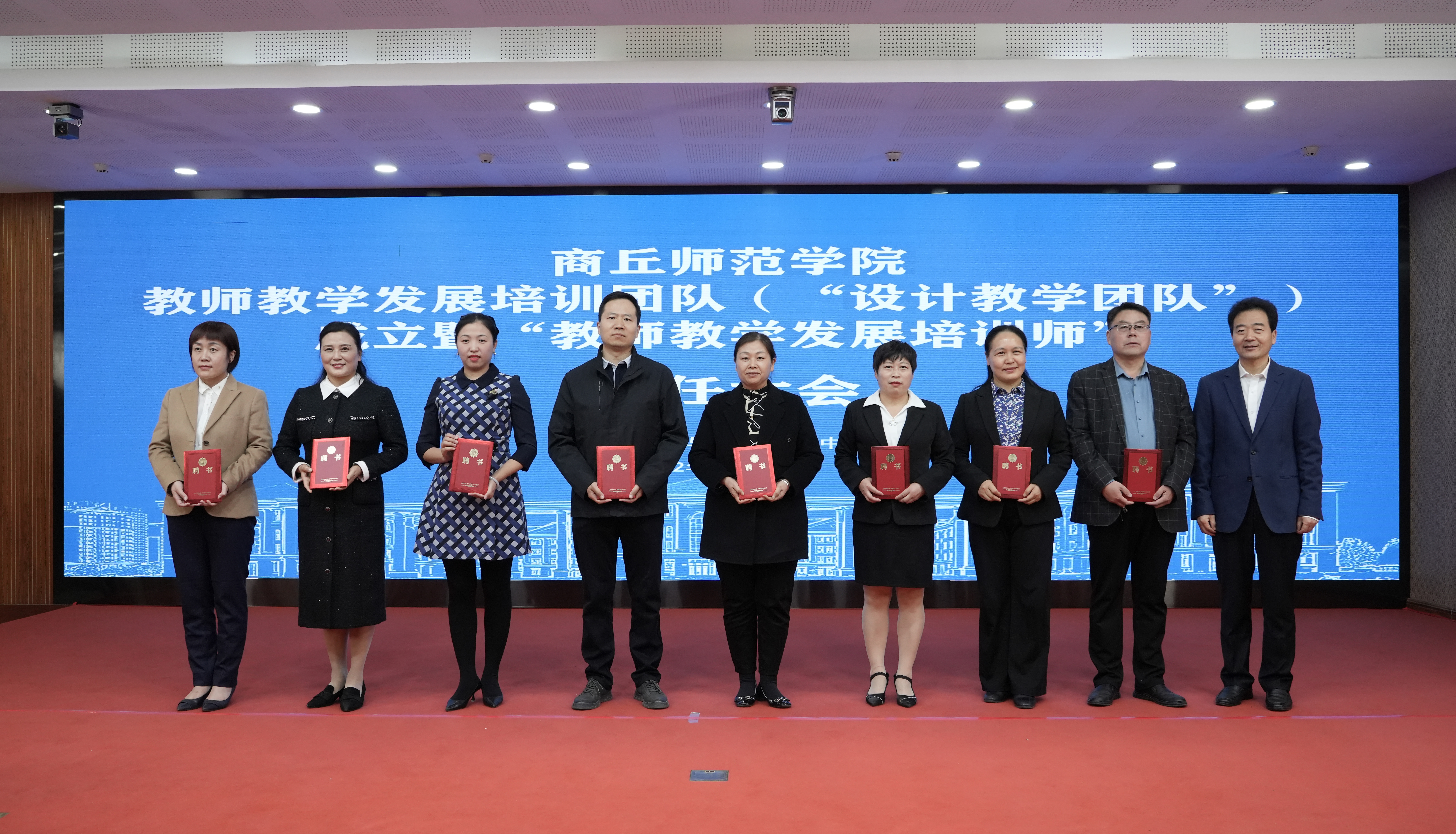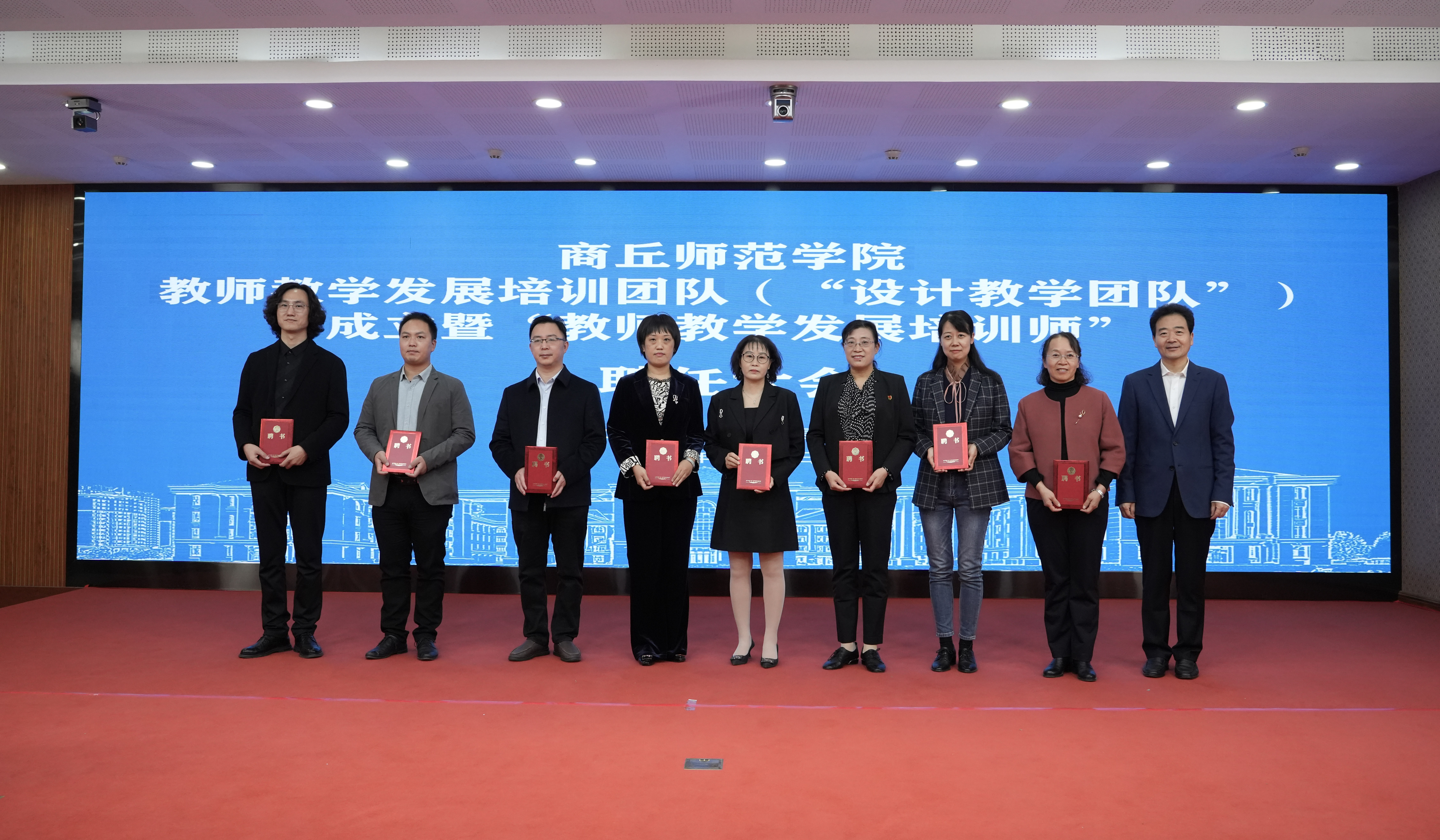 为探索新时代高校教师教学发展的新要求、新理念、新领域、新途径,夯实人才培养中心地位,10月12日,学校在梁园校区145会议室举行商丘师范学院教师教学发展培训团队(“设计教学团队”)成立暨“教师教学发展培训师”聘任大会。校党委副书记、校长陈向炜,副校长郭文佳,教务处处长韩桂玲,人事处处长翟滨,教学评价与教师发展中心主任孟现志、副主任曹松梅,各学院教师教学培训工作组负责人和受聘教师参加聘任仪式。仪式由孟现志主持。