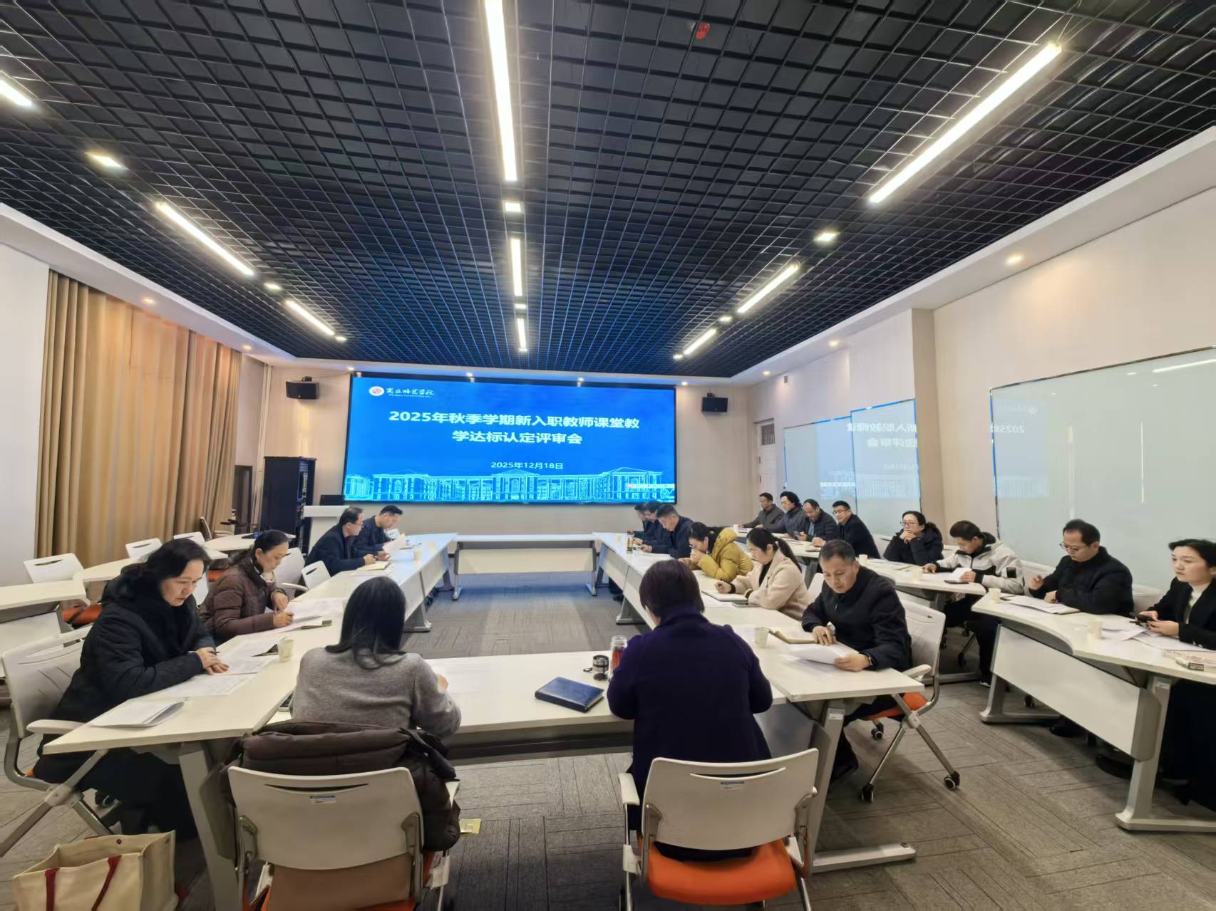 12月18日,我校在梁园校区三商楼143会议室召开2025年秋季学期新入职教师课堂教学达标认定评审会。教学评价与教师发展中心主任孟现志主持会议。教务处、人事处相关负责同志,相关各学院教学副院长及校级教学督导团文科组、理科组和综合组团长参加会议。
